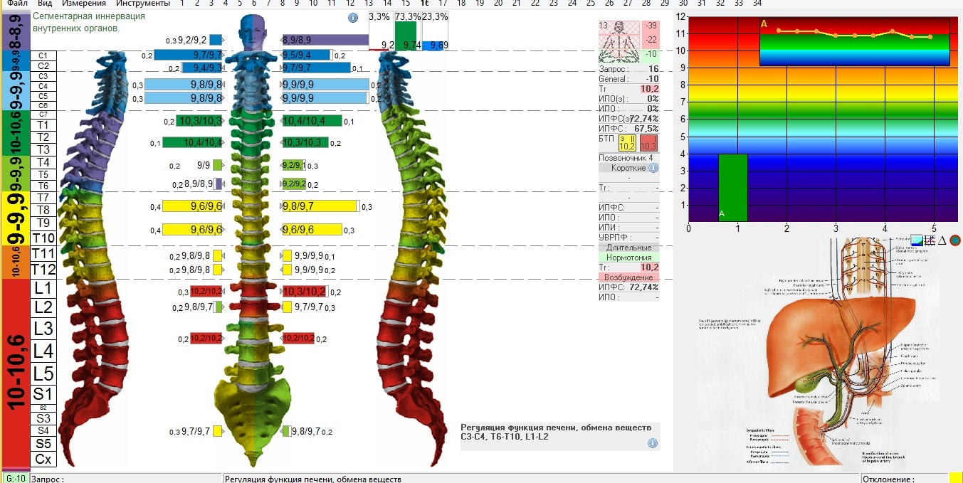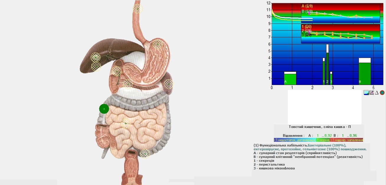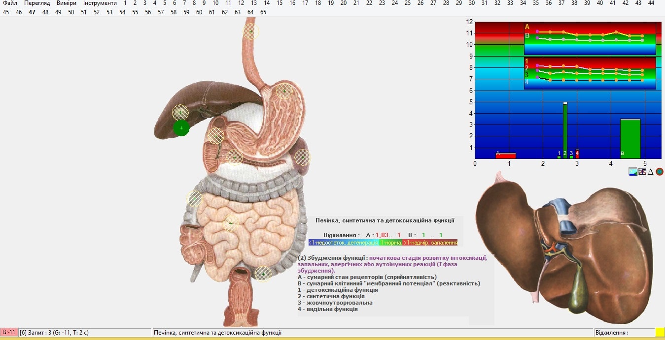 В ході діагностики в стандартному автоматичному режимі проводиться 9 вимірювальних циклів (запитів) з 30 вимірюваннями на парах електродів. Кожне з таких вимірювань для наступного являється вимірювальним навантаженням. Тривалість одного вимірювання 2 сек, тривалість циклу – 1 хв.
